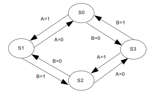 The aim of this subsystem is to give the encoder speed (a signed value on 16 bits), given the A and B signals. The system again, can be split into different functions.