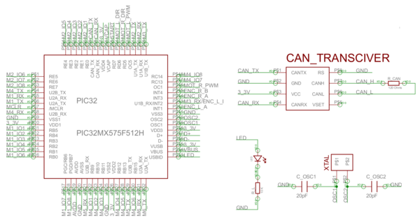 Note that the microcontroller is also interfaced with the CAN bus, and the implementation is the same as described before for the power board. A LED has been putted on a free pin at the end, which is useful to debug or to make the first ’led blinking test’ for example.