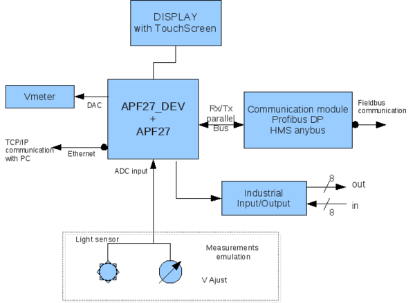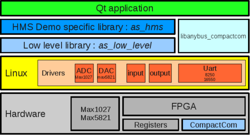 HMS demo board is an electronic development board that demonstrates industrial capabilities of the APF27 ARMadeus board.